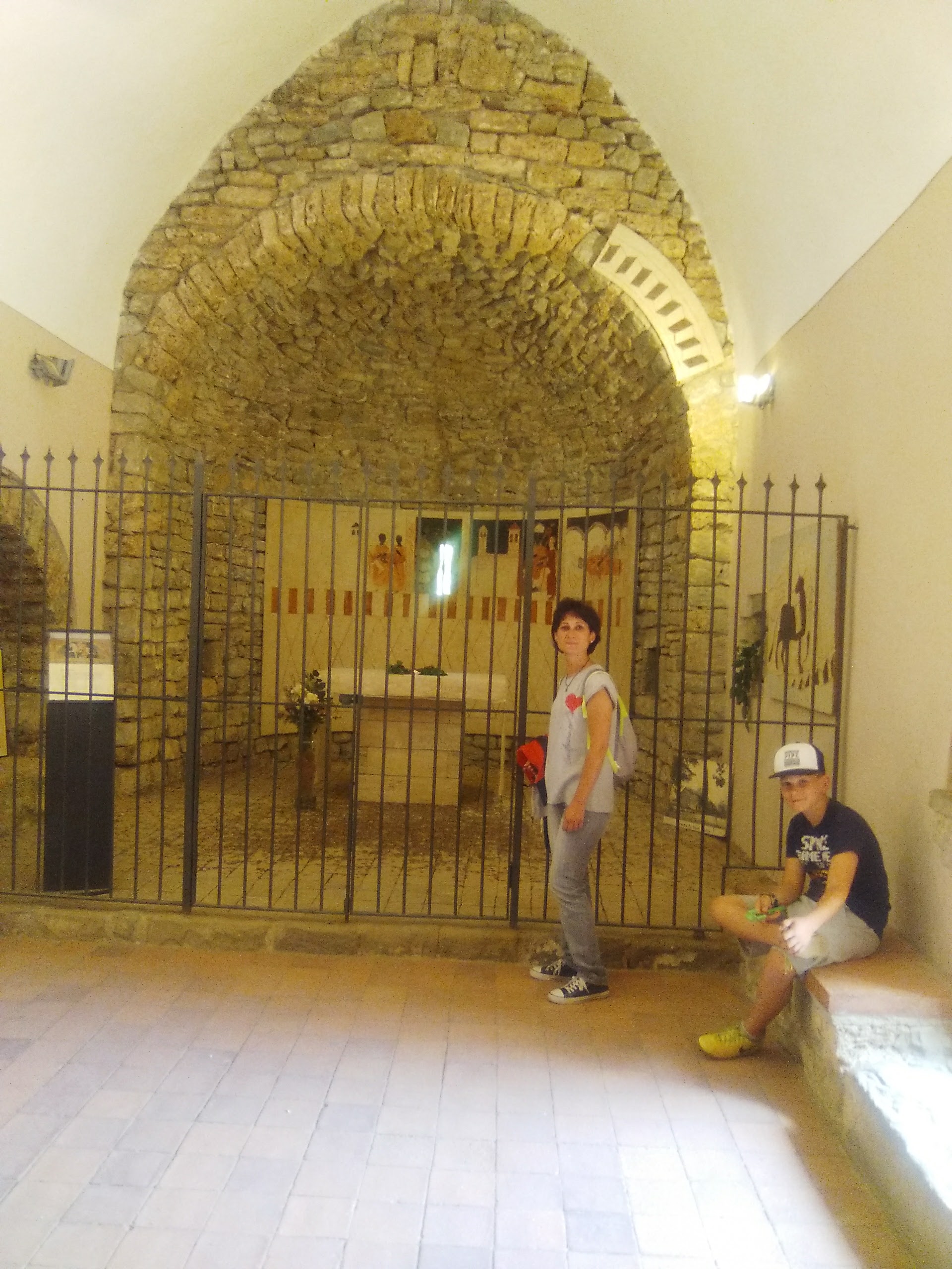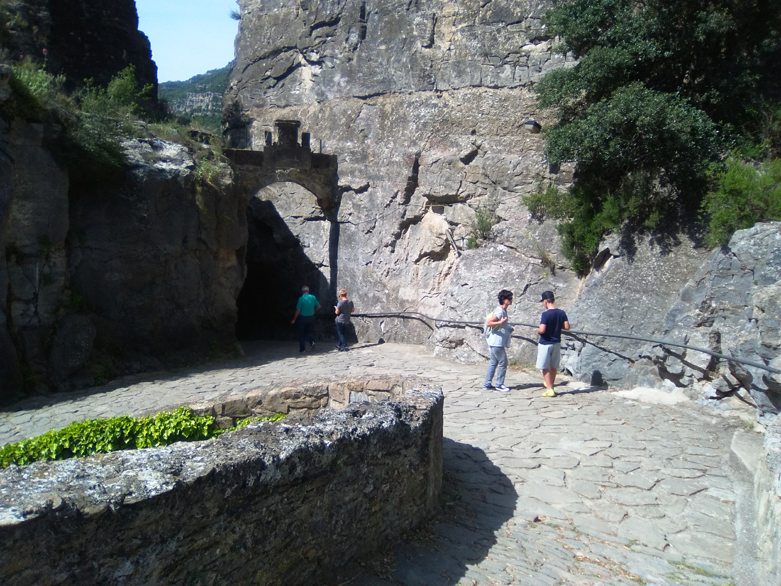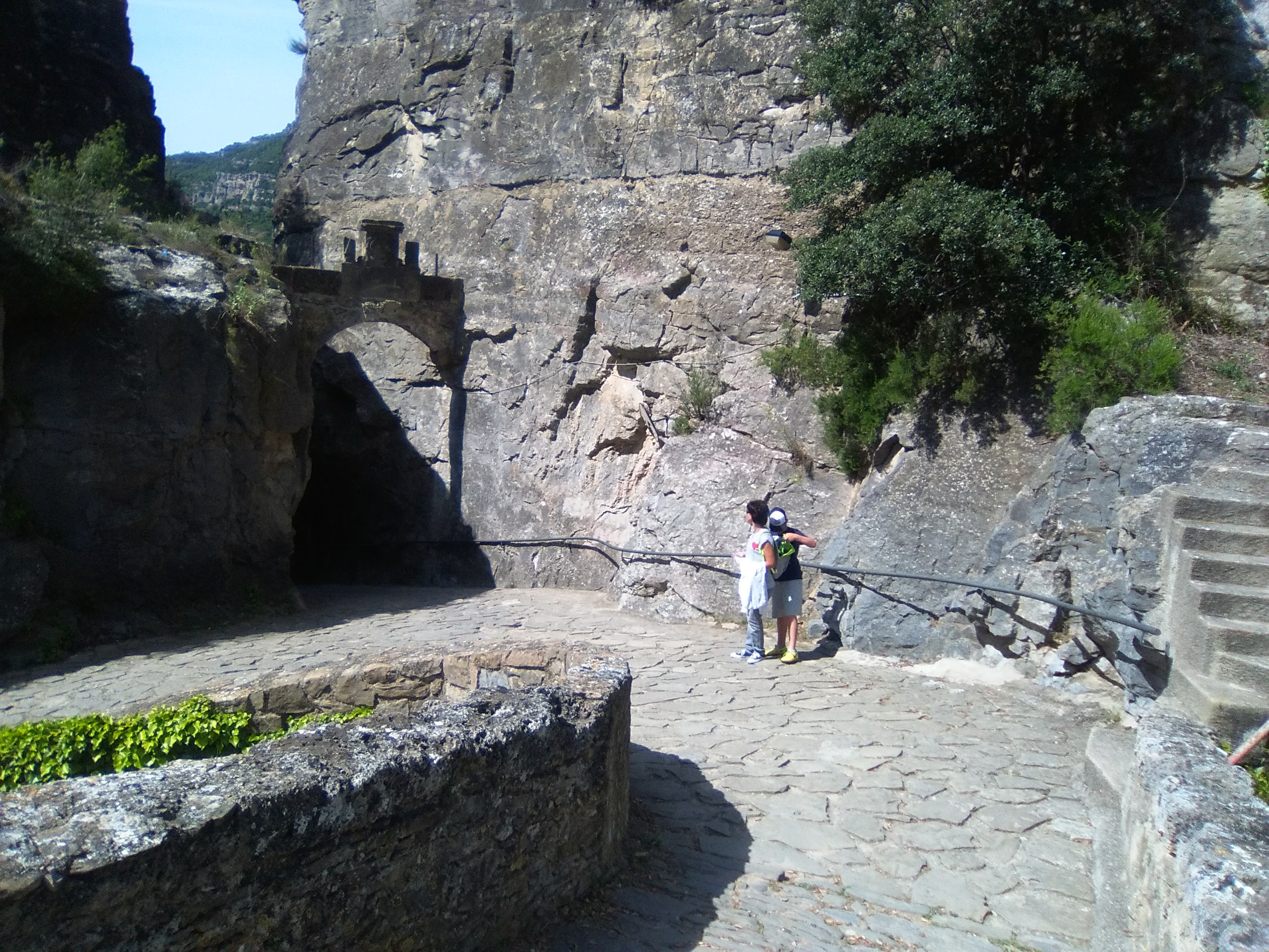 Continuando nuestro recorrido llegamos a la Iglesia de Sant Miquel, una hermosa capilla del siglo X que tiene por peculiaridad ser la única iglesia románica construida debajo de una cueva. Cuentan que anteriormente a la iglesia este sitio ya era un lugar de culto pagano. Es la única de sus características en Cataluña. Destaca en su interior la deliciosa cruz de Sant Miquel del Fai.