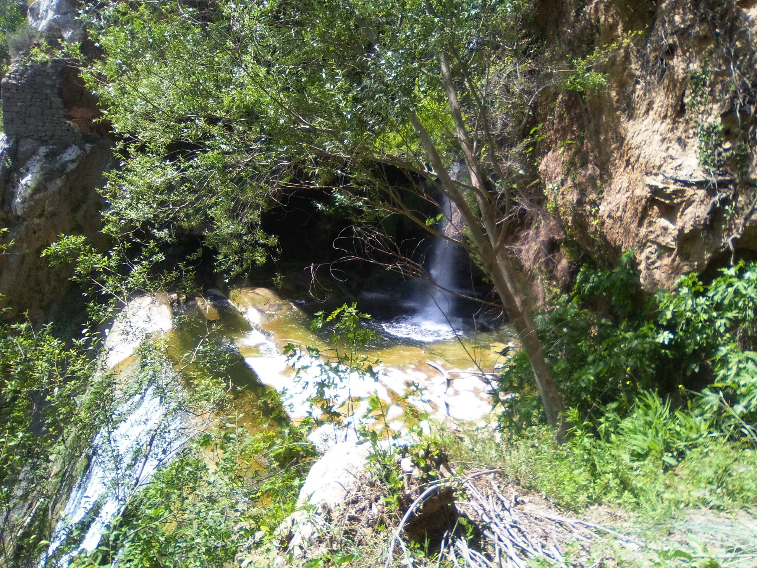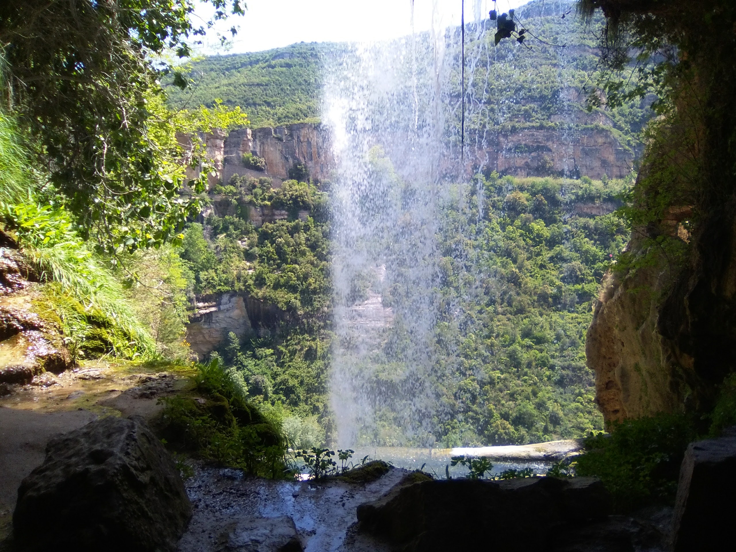 Continuamos para llegar al Llac de les Monges, un pequeño lago escondido bajo la roca y que marca el comienzo de una especie de pasillo interior en la montaña que nos permitirá pasar por detrás del espectacular salto de agua del río Tenes.