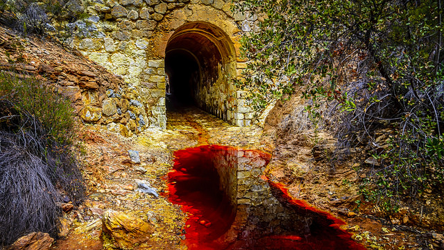 Se caracteriza por sus profundas y áridas cicatrices dejadas por las excavaciones y, sobre todo, un intenso color rojo que caracteriza las aguas del río, totalmente saturadas de óxido de hierro.